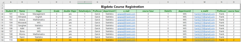 자 이번에도 마찬가지로 엑셀에 있는 데이터들을 DB화 시켜주도록 할게요.