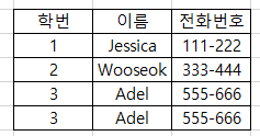 위의 표는 테이블이지만 릴레이션은 아닙니다. 릴레이션의 특성 중