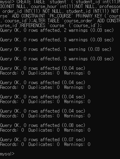 우선 참조 무결성제약 조건때문에 student 테이블과 professor 테이블에 데이터를 우선적으로 삽입해준 다음