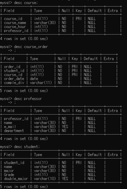 (order_id,student_id,course_id,order_date,comple_div); # course_order 데이터 삽입