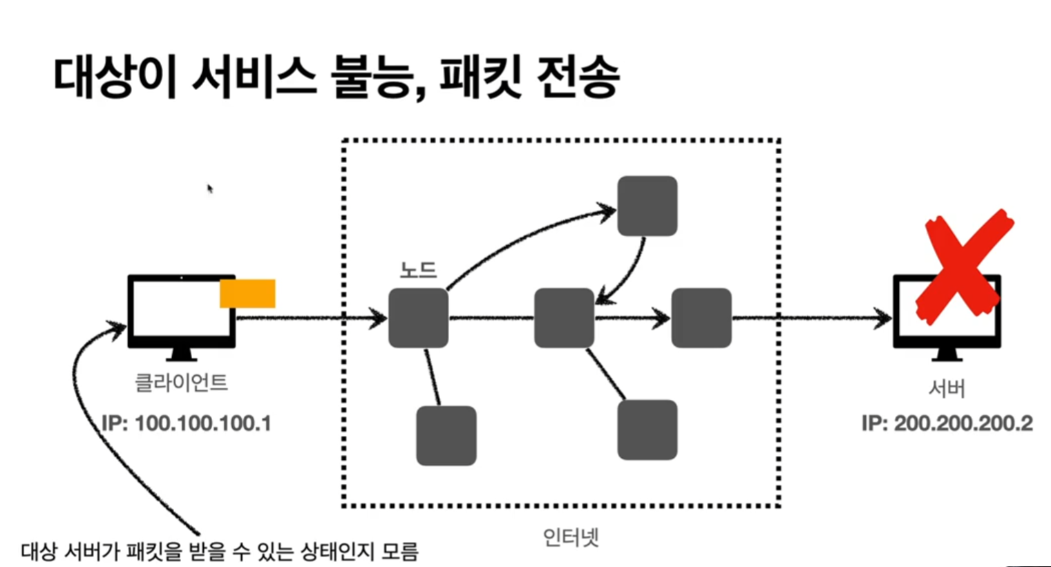 → 패킷이 중간에 사라지거나, 패킷이 순서대로 오지 않을 수 있는 문제점이 발생함