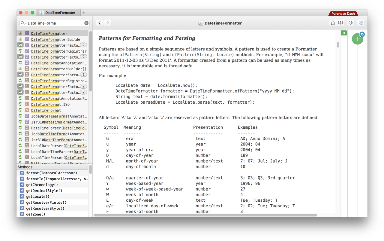 ofPattern() 메소드의 파라미터로 사용할 수 있는 패턴 기호에 대한 설명은 자바 API DateTimeFormatter 클래스의 Pattern for Formatting and Parsing을 참고하면 된다.