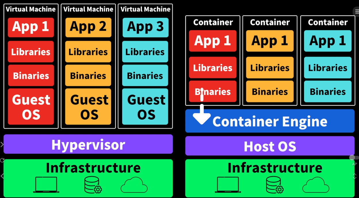 하지만 Container를 사용하면 Container 엔진하나만 설치하면 각 서버마다 OS가 설치될 필요가 없는