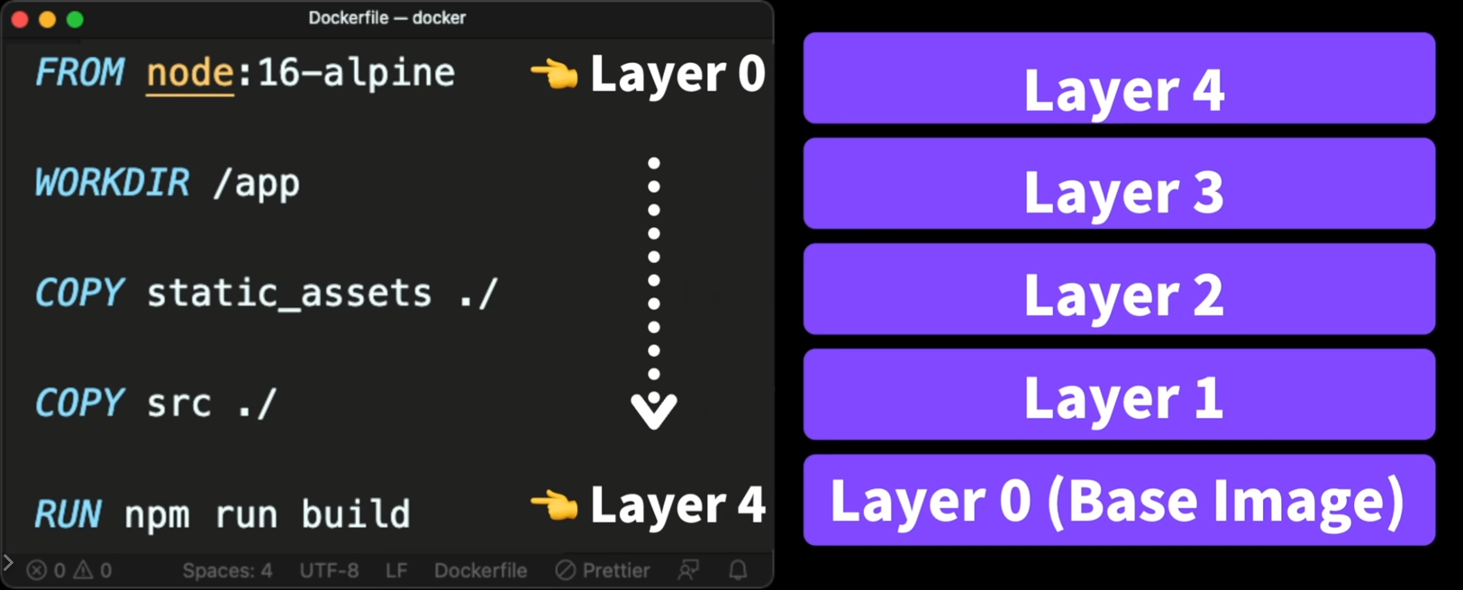도커파일은 레이어시스템으로 이루어져 있기 때문에 빈번하게 수정되는 것일 수록 나중에 작성하는 것이 바람직하다.