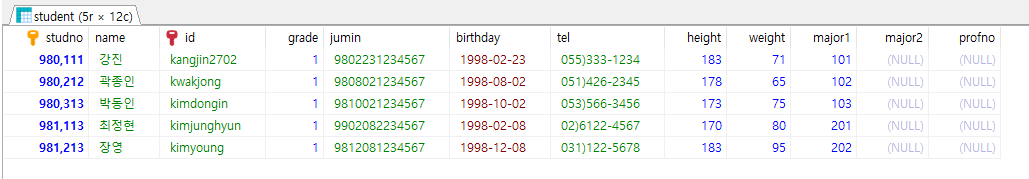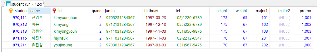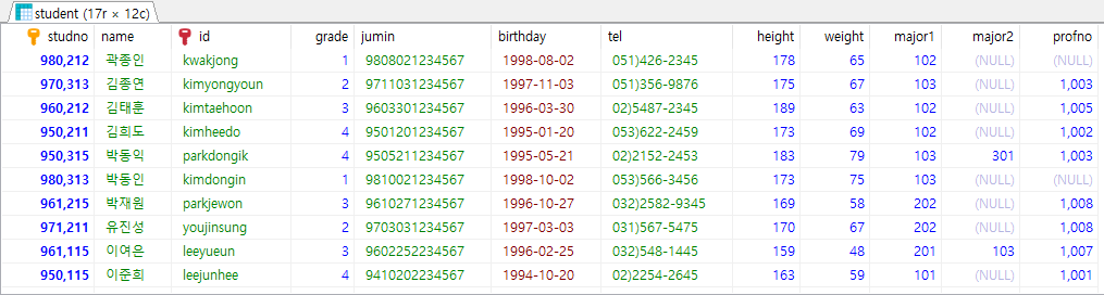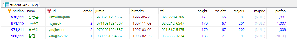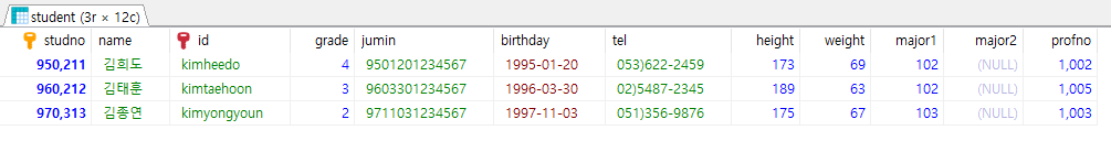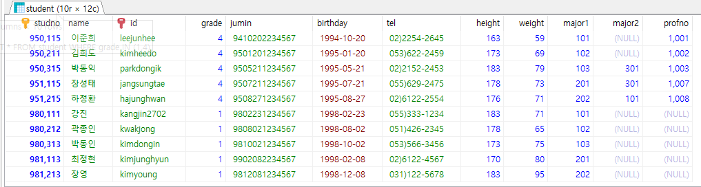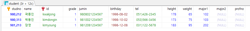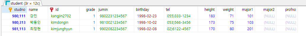 SELECT * FROM student WHERE NAME LIKE '___' ORDER BY NAME DESC; # 내림차순