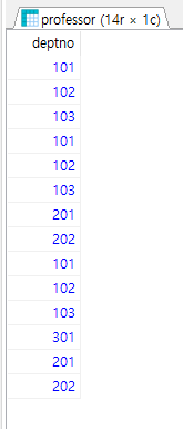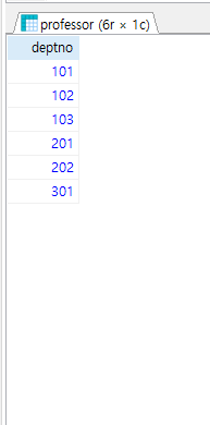 2. professor 테이블에서 부서번호를 중복되지않도록 출력하라