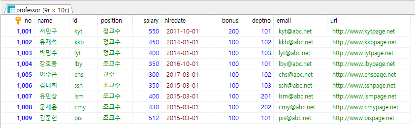 SELECT * FROM professor WHERE POSITION LIKE '%교수';