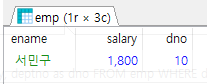 SELECT ename, salary, deptno as dno FROM emp WHERE deptno=10;