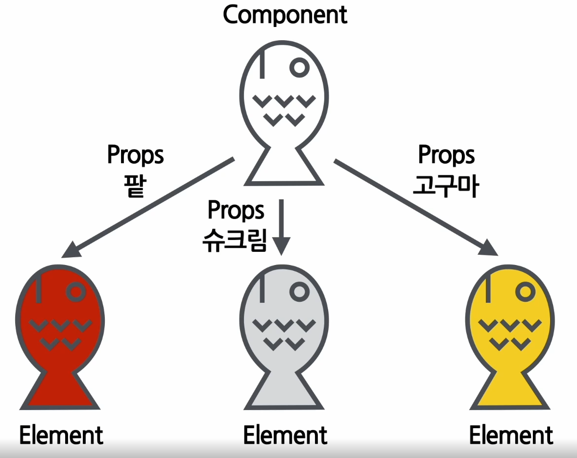 그럼 여기서 props는 붕어빵의 속재료와 같다. 같은 붕어빵 틀에서 만들어졌더라 하더라도