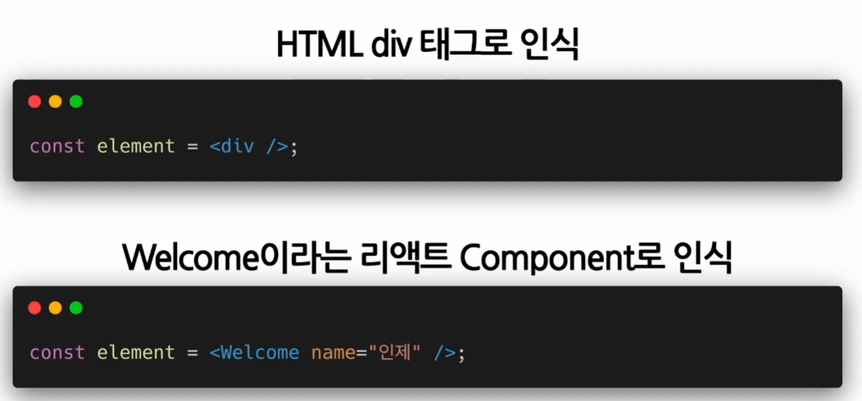 만약 위코드에서 Welcom이 소문자 w로 시작했으면 HTML의 DOM 형태로 인식되어서 에러를 발생시킬 수 있다.