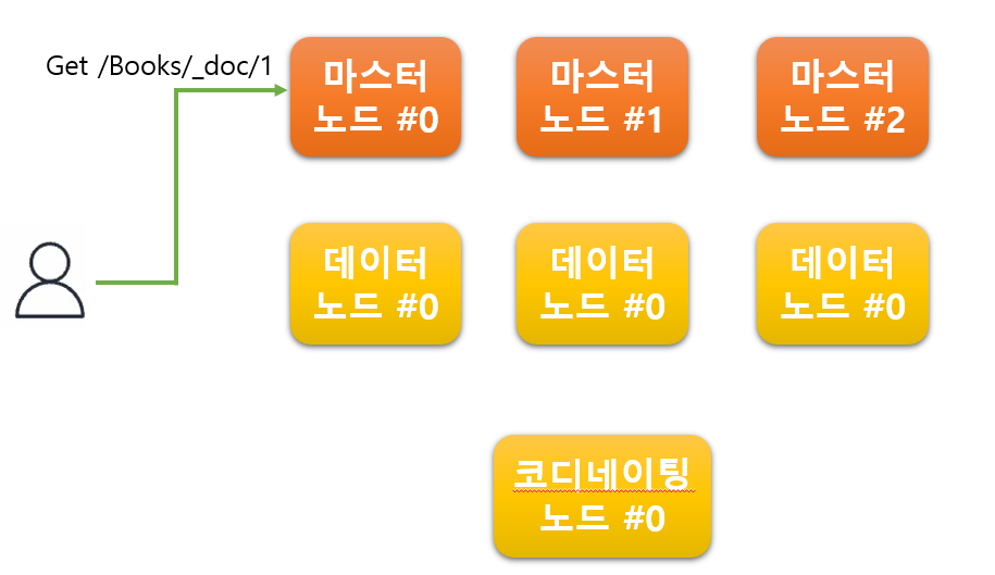 저렇게 마스터 노드가 Get 요청을 받으면 마스터 노드는 doc1 문서를 누가 가지고 있는지를 알고 있기 때문에