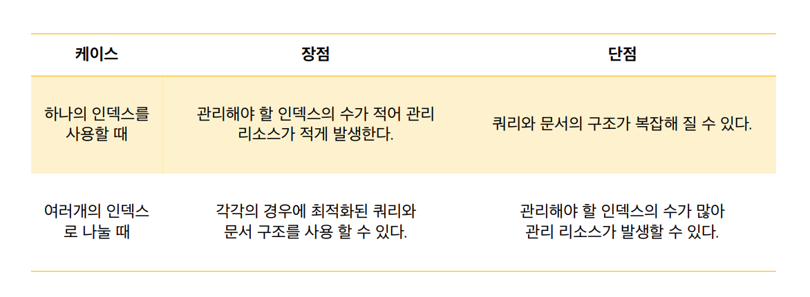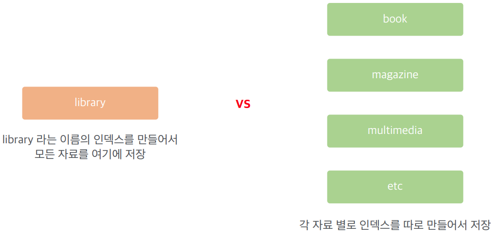 그럼 위 그림과 같이 하나의 인덱스에 모든 자료를 저장하는 방법이 있을 수 있고