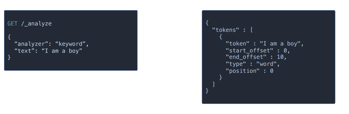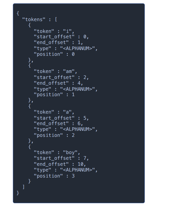 보면 keyword type과는 달리 i, am, a, boy 4개의 토큰이 생성된 것을 확인할 수 있다.
