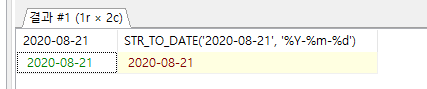 SELECT '2020-08-21', STR_TO_DATE('2020-08-21', '%Y-%m-%d');