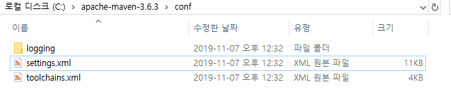 그게 아니라면 Maven 설치 압축파일을 푼곳에 config 디렉토리에 settings.xml이 존재한다.
