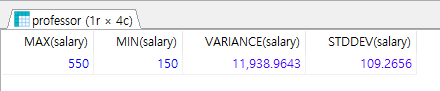 MAX(최대값), VARIANCE(분산), STDDEV(표준편차)가 존재한다.
