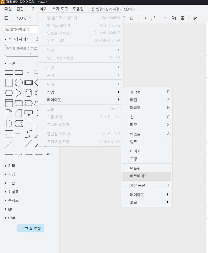 그럼 이제 AI가 작성한 Mermaid를 Draw.io 같은 mermaid를 지원하는 Tool에서