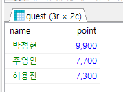 위 구문을 보면 guest 테이블과 pointitem 테이블을 조인하였는데 같은 키를 이용해서 조인을 한 것이 아니라 서로다른 컬럼을 조건으로 사용하여 조인을 하여다. 이러한 조인 구문을 비등가 조인(Non-Equi join)이라한다.