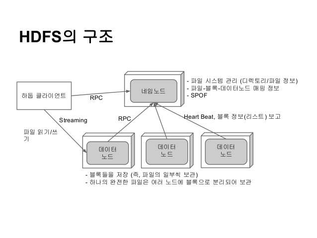 : 데이터 노드는 파일 시스템의 실질적인 부분으로서 클라이언트나 네임노드의 요청이 있을 때,