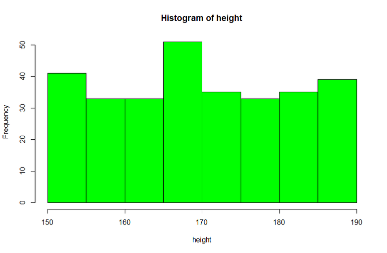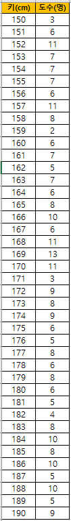 예를 들어, A대학교 학생 300명의 키를 조사하여 다음 그림과 같은 300개의 데이터가 있다고 가정합시다.