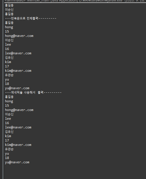 이를 통해 반복문을 통해서 전체 회원정보를 출력하면 다음과 같이 출력할 수 있다.