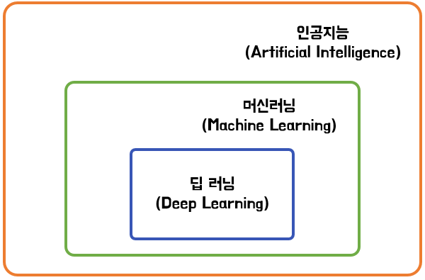 위에서 말씀드린 머신러능은 인공지능의 한분야입니다. 그리고 딥러닝은 머신러닝의 한분야이고요.
