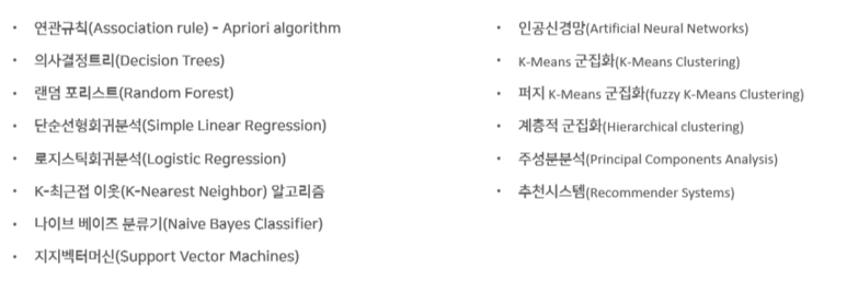 위 이미지에서 볼 수 있다시피 데이터 마이닝과 머신러닝에서 사용되는 알고리즘들인데요.
