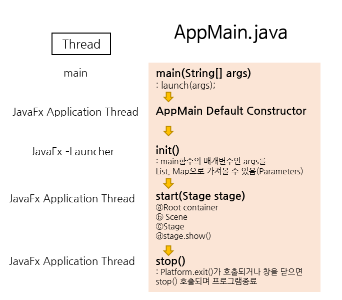 System.out.println(Thread.currentThread().getName() + ":init()호출"); // init메소드는 자바FX런처가 실행함