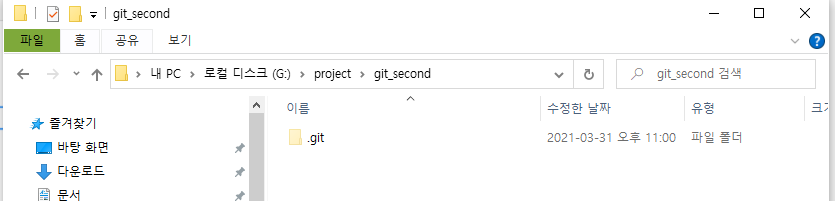 위 사진을 보면 git_second라는 디렉토리에 새로운 깃을 초기화해놨다.