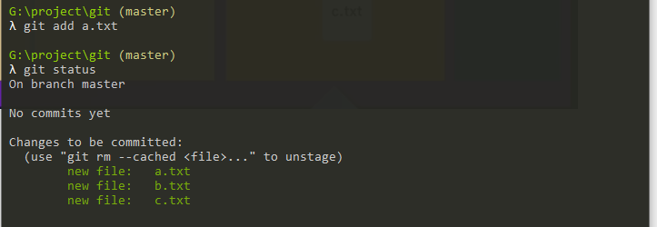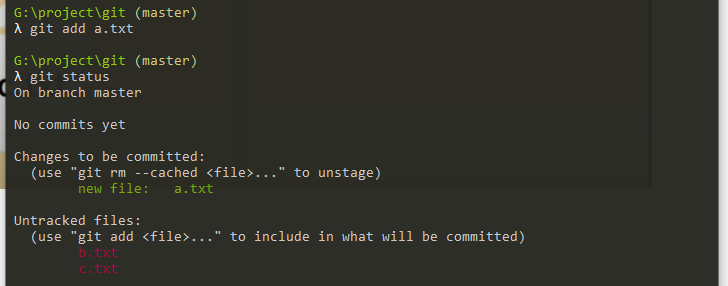 아래와 같이 git add a.txt 를 실행한뒤 status를 보면 commit할 준비가 되어있는 변경사항 새로운 파일 a.txt가