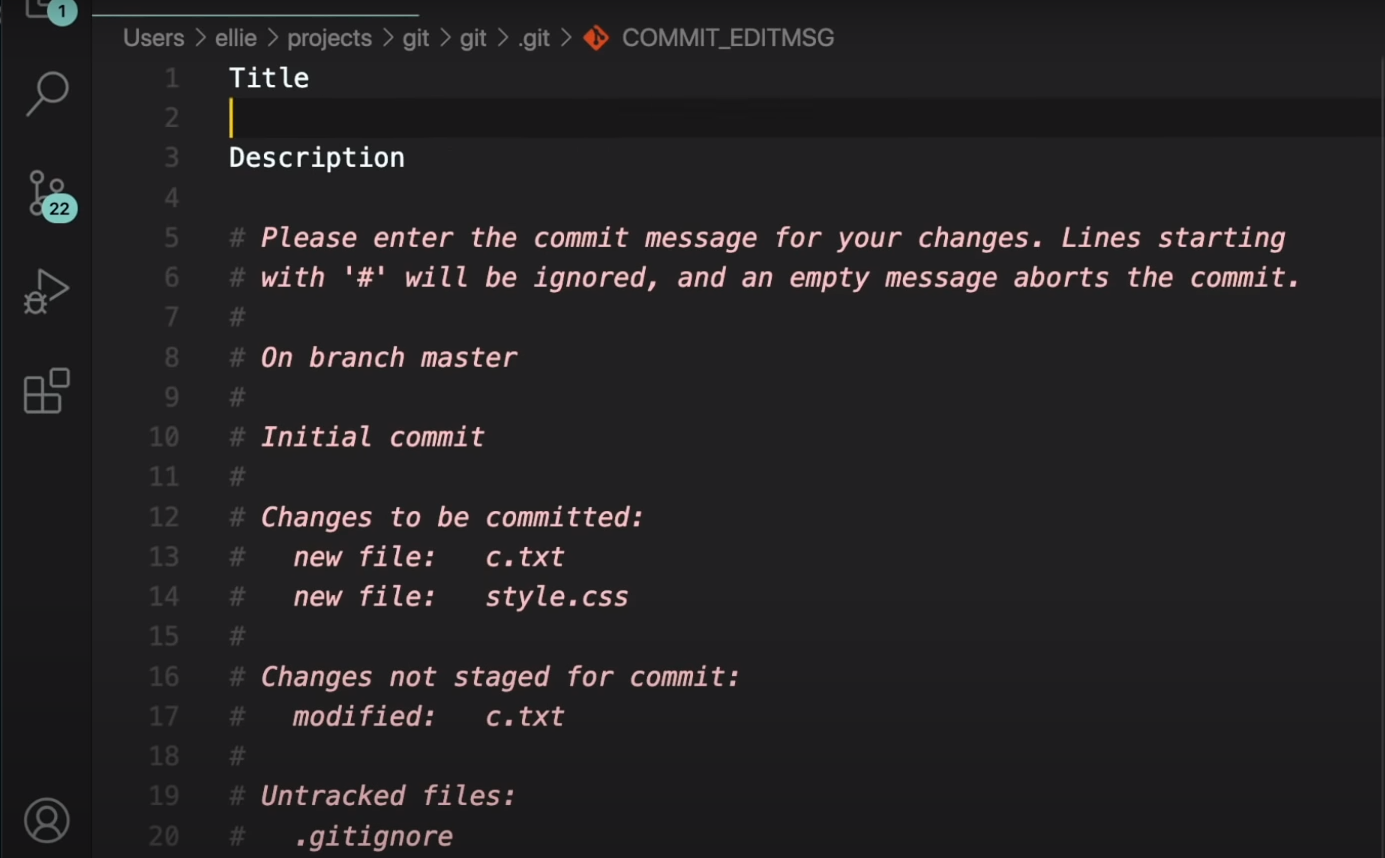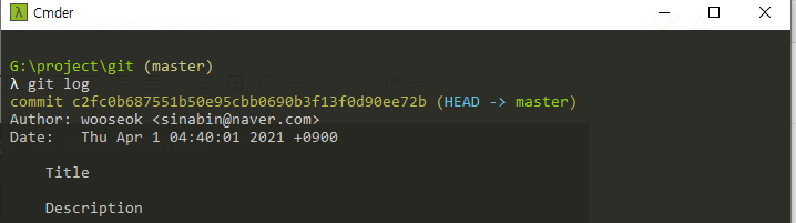 commit명령어 실행시 기본적인 탬플릿이 나오는데 보통 Title과 Description을 작성해준다.