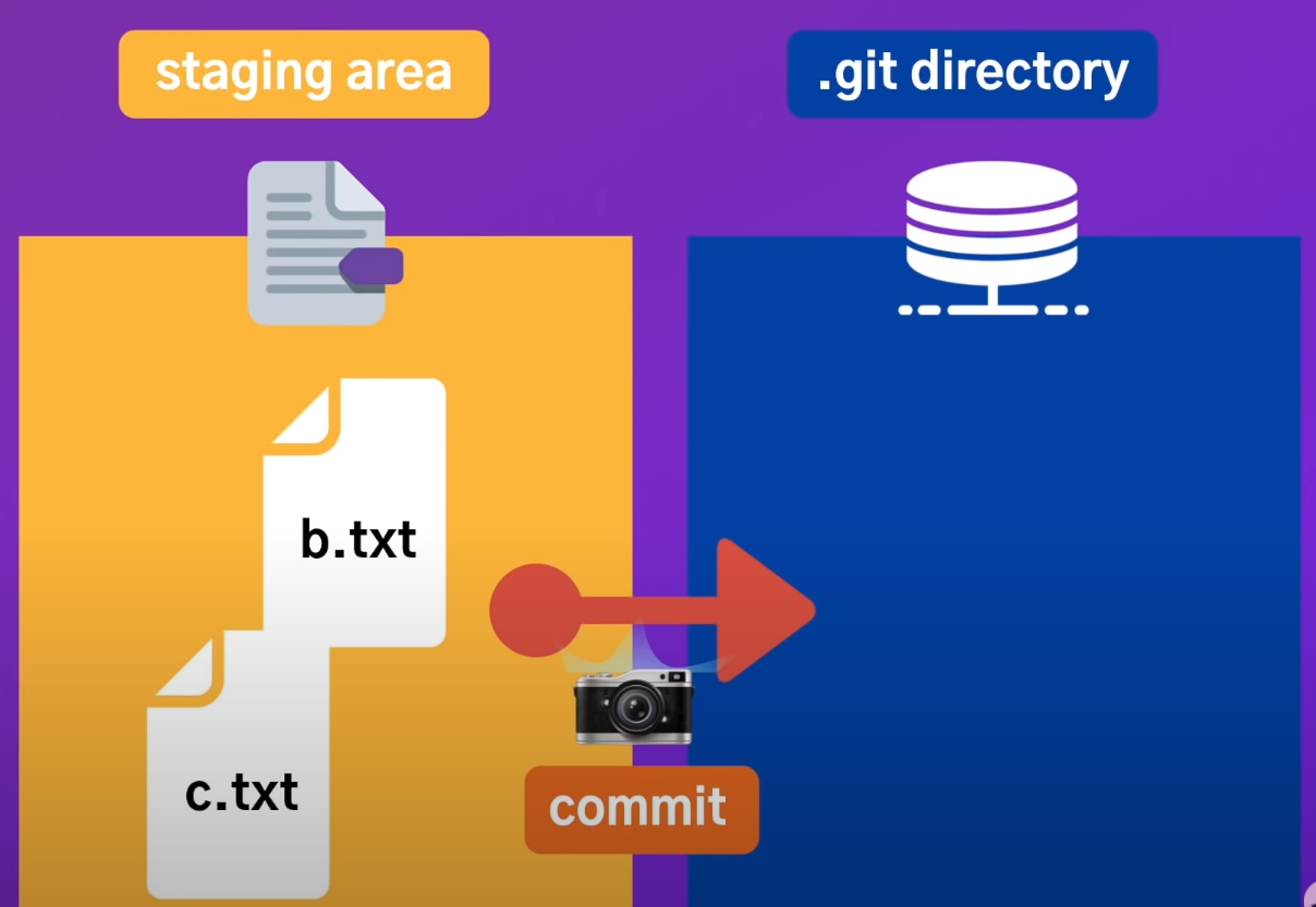 git commit 이라는 명령어를 통해서 stage area에 있는 파일들을 git repository에 저장할 수 있다.