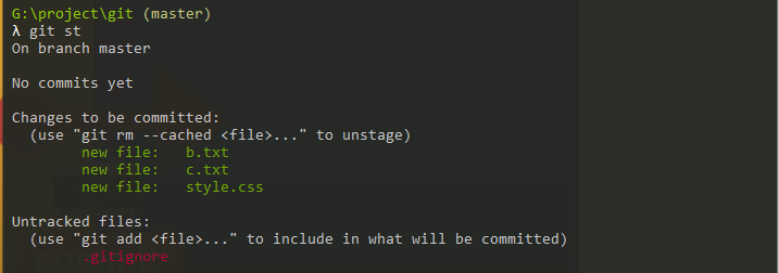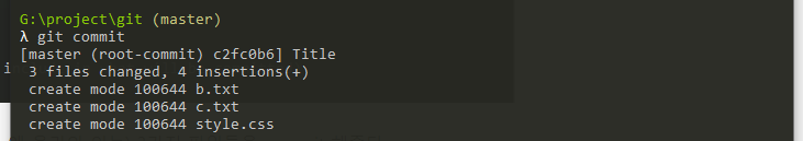 위와 같이 커밋할 준비가 되어있는(stage area에 올라와 있는) 3가지 파일들을 commit 해주면 아래와 같다.