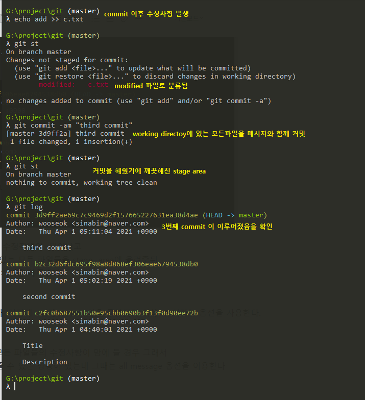 git commit -am "third commit"