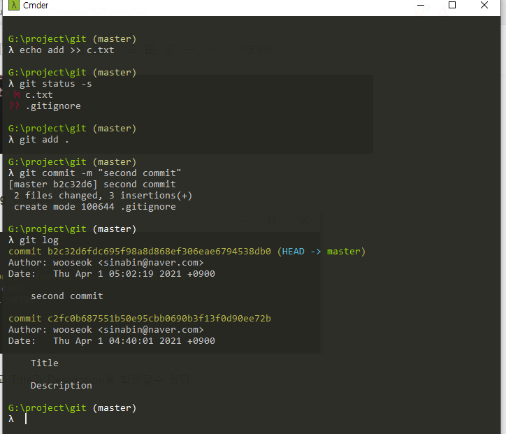 git commit -m "second commit" 이런식으로 커밋을 해주었다.