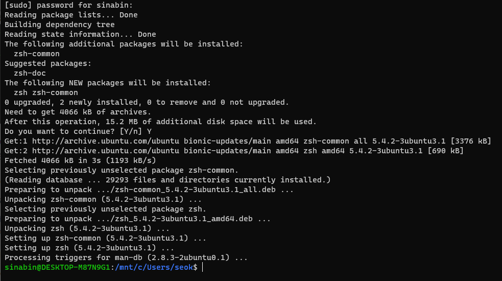 권한 문제를 해결하려면 sudo apt install zsh 이렇게 실행하도록하자.